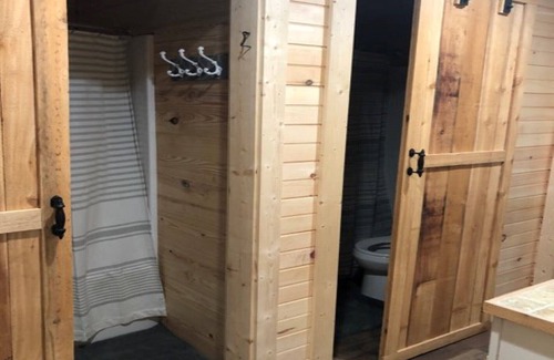 Esta hermosa cabaña está ubicada en los árboles frente al agua en Bear Creek, cerca del río Tennessee y el lago Pickwick. ¡Tiene una gran terraza sombreada para escuchar las olas y ver hermosas puestas de sol! ¡Un lugar perfecto para sentarse y relajarse! Duerme 14 !!Esta es una casa nueva de 2 pisos con todos los muebles nuevos. La planta principal tiene 2 dormitorios, 2 baños, sala familiar con cocina abierta, todas con hermosas vistas al lago. La cocina con todos los electrodomésticos nuevos se abre a una gran terraza equipada con parrilla de gas para todas sus necesidades de cocina. Arriba, encontrará un gran balcón con vista a la sala familiar y la cocina con 2 áreas separadas, cada una con literas tamaño queen. Un total de 4 camas queen size arriba. También hay una sala de lavandería con lavadora y secadora disponibles. Para los huéspedes que disfrutan de la televisión, hay un televisor de 50 "con satélite para mantenerse al día con las noticias. Si planea navegar, hay una rampa pública para botes en el Colbert County Rose Trail Park ubicado a menos de 1 milla de esta propiedad. Además, se pueden alquilar botes en el puerto deportivo de Eastport, que está directamente al otro lado del agua.