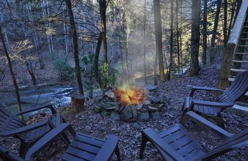 Nuevo en Blue Sky Cabin Rentals a partir de marzo de 2019. Roaring Creek es una propiedad de arroyos que no admite mascotas y tiene acceso por carretera pavimentada. Enterrado en la montaña con vista a Mountaintown Creek, encontrará toda la naturaleza serena que su corazón desea. Traiga sus cañas de pescar y "Un juego" para pescar nuestro trofeo de truchas de renombre local. Mientras recorre una línea, puede disfrutar de la hoguera al borde del afluente que fluye hacia el sur desde las montañas que forman la cuenca que define el área silvestre de Cohutta. No se detenga allí, venga a disfrutar de las abundantes cubiertas que ofrece esta cabaña, con comedor al aire libre para seis personas y jacuzzi en el nivel de la terraza. Paso arriba para disfrutar del área de desayuno en la cubierta del nivel principal con el área de parrillas a la mano. La pareja afortunada que se adueña de la habitación del rey de nivel superior podrá disfrutar del balcón privado con la alegre armonía del mundo vivo. Si hace mal tiempo puede disfrutar del área de juegos a nivel de la terraza para mantener a la familia entretenida con una divertida competencia.El ambiente en Roaring Creek fue diseñado para la comodidad, el rejuvenecimiento y la reconexión a las cosas más simples. ¡Esperamos que disfrutes de nuestro paraíso!