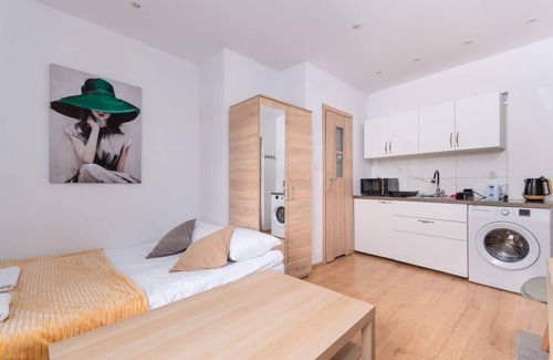 Rynek Jeleniogórski Cosy Studio is a cozy apartment, featuring a living room with a sofa bed and a kitchenette, as well as a bathroom. It offers a range of top-class amenities, including free WiFi, a TV, a washing machine, an iron, a hairdryer, a fridge with a freezer, an induction cooker, a microwave, a toaster, and kitchen accessories.