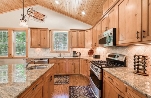 Pero no pase todo su tiempo lejos, esta casa de vacaciones es el lugar ideal para disfrutar de barbacoas informales en la terraza trasera o para entretenerse en la amplia sala principal. Aún mejor, los paseos nocturnos a lo largo del lago están a solo unos pasos.