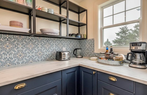 The full kitchen, with an island and a pantry, is equipped with everything you need inside, and a BBQ area outside, providing you the option to grill up your favorites in or out.