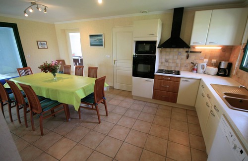 This modern, luxury detached villa has a wonderful garden with a large lawn, a wooden veranda at the front of the house, garden furniture, a parasol and loungers. You can use permanent barbecue and a private indoor swimming pool with jet stream for a delightfully sporty swim. In the same space there is also a sauna, jacuzzi and steam cabin. There is lots of space for children to play, with a swing and a slide. The villa is just 600 metres from Trénez beach and 5 km from the small town of Moëlan-sur-Mer. This area, in the south of Finistère, boasts 14 km of varied coastline ranging from steep cliffs to small fishing ports hidden in rugged inlets. You will also find various beaches in sheltered coves. Just 150 metres away there are boats and kayaks for hire. The interiors of the home are nicely done and decorated. You can spend relaxing time in the fenced garden while enjoying the barbecue meals. The child-friendly accommodation has a high chair, children's bed, and play equipment.