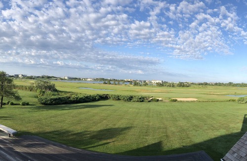 Ubicada al final de la calle más bonita de Quogue, esta casa soleada al sur de la autopista, contemporánea con tejas extensas y con extensas extensiones de campo, domina el campo de golf local y la bahía, a solo un tiro de piedra del club de navegación local. El gran diseño arquitectónico abierto ofrece vistas ideales del campo y la bahía desde la cocina, la sala de estar, el comedor y el estudio, así como el dormitorio principal en suite. Un espacioso y acogedor loft es perfecto para leer, mirar televisión o disfrutar de las vistas desde su balcón. Una cubierta de ipe recientemente orientada hacia el oeste permite una continuación expansiva del interior del nivel principal hacia el exterior, así como las puestas de sol más memorables. Piscina de gunita climatizada de 50 pies de agua salada de nueva construcción.
