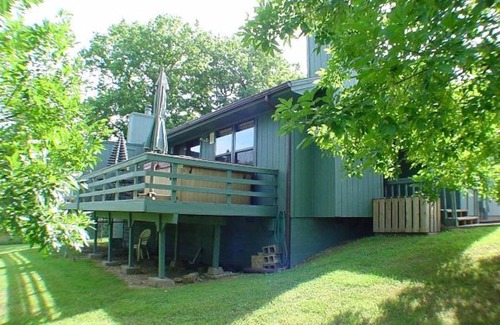 Blue Water Drive # 4 (Shadowridge # 4) es un dúplex de dos cuartos de baño de dos habitaciones, semi-aislado, con vista al lago. Hermosos pisos de madera y azulejos de cer��mica y decorados con encanto rural. El dormitorio principal tiene KING BED, baño privado, TV de 19 'con DVD / VCR. El segundo dormitorio tiene KING BED, TV de 25 'y DVD / VCR. La sala de estar tiene un sofá cama Queen, una CHIMENEA, una TV de pantalla plana de 40 pulgadas con pantalla LED, DVD, estéreo y puertas corredizas de vidrio en la cubierta privada. Cocina totalmente equipada. Calefacción central y aire acondicionado con ventiladores de techo en cada dormitorio y sala de estar. Cubierta grande de 10 por 20 pies con su propia TUB CALIENTE PARA SEIS PERSONAS PERSONAL y una puerta contigua al # 3 para grupos. Acceso gratuito a WIFI proporcionado. Parrilla de gas. NO FUMAR. ¡Juntos, las tres propiedades de Blue Water Drive dormirán un total de 18 invitados!