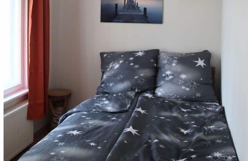 The beautiful apartment is an upper floor apartment (1 staircase) in a renovated style of style in Berlin's suburb Living room, dining room, 2 bedrooms with double beds, another room with Franz. Bed, kitchen; Shower and 2 toilet, hallway. Cot Modern equipment, parking lot, small court garden. Location close to the city, road connection only 100 m away. Bicycles can be conveyed Possibility of storage for motorcycles. (The drivers of these two -wheeled species are particularly welcome !! The third bedroom is something for two who love each other .. The bed is only 1.40 m wide :) Unfortunately, smokers have to light outside because of the non -smokers :) But there is smoking seat and ashtray on the stairs sales of the rooftops ...