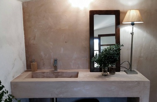 En el exterior se puede disfrutar de una zona habilitada entre los árboles con una mesa, una gran terraza y un pequeño algibe reconvertido en piscina.