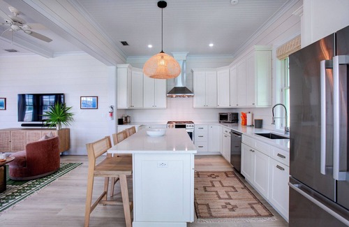 Al instalarte en este alojamiento de 3 dormitorios y 3 baños, encontrarás barbacoas de gas y aire acondicionado. Conéctate al wifi gratis, o relájate frente a un Smart TV. También hay un reproductor estéreo. El cuarto de baño incluye un secador de pelo, toallas y papel higiénico. La cocina está equipada con horno, placa de cocina y frigorífico, además de cafetera y tetera, hervidor eléctrico y microondas. Podrás viajar con poco equipaje, porque tendrás una lavadora y una secadora a tu disposición. Otras comodidades incluyen ropa de cama, una tabla de planchar y calefacción.