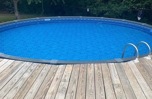 Nuestra propiedad incluye una piscina de 24 pies sobre el suelo con terraza adjunta, ducha exterior cerrada y limpia, y pozo de fuego.