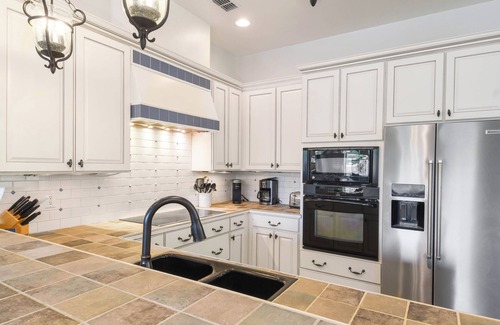 Este alojamiento de 5 dormitorios y 4 baños cuenta con una zona para barbacoas y aire acondicionado. También puedes utilizar la bañera de hidromasaje, además de otras comodidades como toallas y un secador de pelo. Cuando dispones de horno, placa de cocina y frigorífico, además de cafetera y tetera, microondas y utensilios de cocina, no hace falta ir de restaurante cada noche. Y gracias a la lavadora y la secadora, podrás viajar con poco equipaje. Otras comodidades incluyen una tabla de planchar, calefacción y una mesa de comedor.