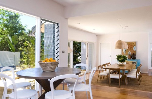 En una ubicación prestigiosa y bellamente tranquila, esta casa de diseño arquitectónico al instante atractiva e inmaculada seguramente hará las delicias. Con acceso a nivel y vistas a través de árboles de goma hacia el océano y al otro lado a través de Pittwater, la propiedad ofrece: - Piscina de azulejos grande rodeada de patios protegidos, cerca de vidrio y salón de sol - Amplias áreas de estar que se abren al patio de la piscina con una mesa de comedor de madera para sentarse 8 y al balcón frontal con maravillosos y modernos asientos de cóctel para 4 - Amplio y principal dormitorio privado con baño, amplia vestidor y balcón privado con vista a la piscina - Una hermosa habitación con tamaño queen Cama, tragaluz, baño privado y vistas al jardín. Dos habitaciones infantiles maravillosamente decoradas, cada una con literas macizas y una cama individual con nido corredizo (cada habitación cómoda para dormir 4). Cocina moderna de granito con electrodomésticos Smeg y Miele. Garaje doble con acceso interno. acceso - Área de juegos / TV grande separada para los niños - Salas de estar y comedores bellamente suaves y de estilo moderno con chimenea, mesa de comedor y cada uno que se abre a balcones separados Características de ios - Ventiladores de techo en todas las habitaciones - Dos T'V (una en la sala de estar principal y otra en la sala de niños rumpas), cada una con reproductor de DVD - Estación de acoplamiento para iPod - Modernas instalaciones de cocina - Microondas - Barbacoa de gas - Refrigerador grande, con hielo maker - Silla alta - Chimenea abierta - Piscina - Modernas hamacas - Secadora de ropa - Lavadora - Garaje doble - Mucho sol desde el amanecer hasta la puesta del sol Con Whale Beach a solo unos minutos, pase sus mañanas en la playa y las tardes soleadas relajándose en el Patio al lado de la piscina. Configuración de las camas: Dormitorio 1 - King Dormitorio 2 - Queen - Habitación Dormitorio 3 - 1 x Litera Dormitorio 4 - 1 x Litera Baños: 3 Tipo de propiedad: Casa