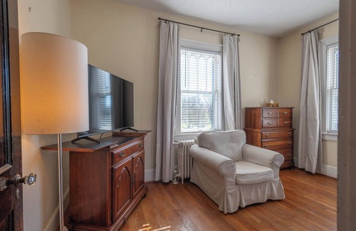 Este alojamiento de 3 dormitorios y 1.5 baños cuenta con un comedor y aire acondicionado. El cuarto de baño incluye un secador de pelo, toallas y papel higiénico. La cocina está equipada con cafetera y tetera, tostadora y licuadora. Podrás viajar con poco equipaje, porque tendrás una lavadora y una secadora a tu disposición. Otras comodidades incluyen ropa de cama, una tabla de planchar, calefacción y una mesa de comedor.