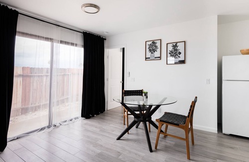 Striking Black & White Apt w Gated Entrance & Yard | Apartamento en Desert Hot Springs