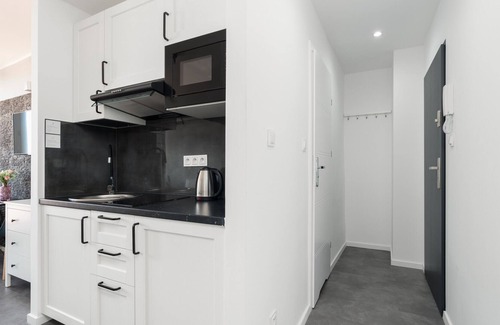 This fully equipped studio for 3 people has been designed to create a homely and welcoming atmosphere in a great location in Poznan. The aesthetically pleasing layout of the apartment and high quality furnishings guarantee a stay of the highest standard. The unique aura of the apartment is complemented by an attractive, bright interior colour scheme with the use of stylish decorative elements. The space is divided into a living room with a kitchenette and a bathroom with a shower. There is a comfortable double bed and a single sofa bed. The studio is bright and functionally furnished to make your stay as comfortable as possible. The studio's greatest asset is its private balcony overlooking the city - ideal for enjoying an aromatic morning coffee. Modern conveniences such as free WiFi and a flat-screen TV, as well as all the necessary bathroom and kitchen equipment, ensure a pleasant stay. Complimentary toiletries (soap, shampoo and shower gel), towels and bed linen are provided to make your stay as comfortable as possible.