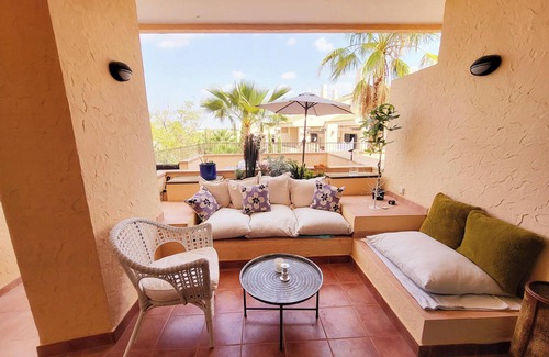 Stunning 2-bedroom apartment with splash pool! Hacienda Del Alamo, Golf Resort, Se encuentra en Fuente Álamo de Murcia. Stunning 2-bedroom apartment with splash pool! Hacienda Del Alamo, Golf Resort, ofrece alojamiento, con Vista, Balcón/Terraza, Seguridad, Entre otras comodidades. Estas características Apartamento Vista, Balcón/Terraza, Seguridad, Para que su estadía sea cómoda.