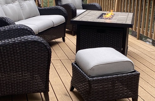 En esta casa de vacaciones de 232 m² podrás relajarte en el jardín o tomarte algo en el porche o patio, ¡y no te olvides de servicios como los muebles de exterior! En cuanto al interior, puedes disfrutar del wifi gratis, de la televisión y de los videojuegos.