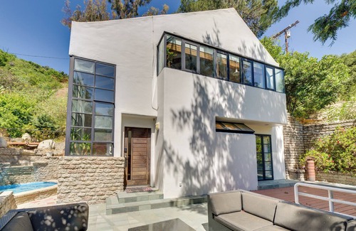 You’ll feel like you’ve been whisked away to a Mediterranean estate when you stay at this Sherman Oaks vacation rental. ‘Secluded Oasis’ earns its name from lush, sprawling grounds lined with stone walking paths, fruit trees, and shared amenities like a large furnished patio and outdoor pool. A historic property previously owned by famous actor Judd Hirsch, this 1-bed, 1-bath villa’s cathedral ceilings, unique architecture, and MCM furnishings create a quintessential Los Angeles experience.