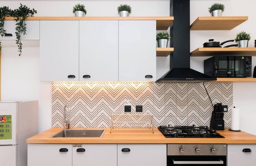 Este alojamiento de 1 dormitorio y 1 baño cuenta con una sala de estar y aire acondicionado. El cuarto de baño incluye un secador de pelo, toallas y papel higiénico. La cocina está equipada con horno, placa de cocina y frigorífico, además de hervidor eléctrico, microondas y utensilios de cocina. Y no tendrás que llevarte ropa de más, porque también hay una lavadora.