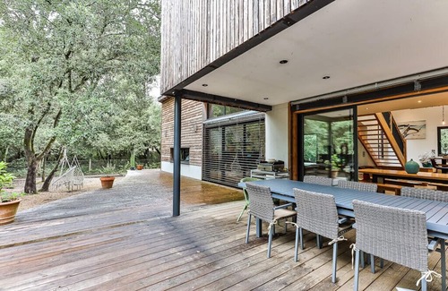 Esta casa será la base perfecta para sus vacaciones en familia con niños, disfrutará del tiempo dentro y fuera gracias a la terraza y el jardín que rodean la casa con tumbonas, columpios, pista de petanca, mesa, plancha/braserro, así como diversos equipos/juegos para los niños: caseta, trampolín, columpio, tobogán, arenero.