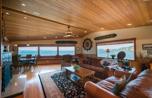 Situado en el nivel superior de la histórica estación de Pier 14 Piloto (siendo operado por el río Columbia Pilotos) la Casa Piloto es una suite de lujo elegantemente decoradas en el corazón del histórico muelle de Astoria. Rodeado de agua, casi todas las habitaciones ofrece una vista panorámica del río Columbia.