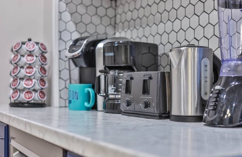 Cocina totalmente equipada incluye horno, nevera, microondas, cafetera, tostadora, licuadora, ollas. Almacenado con cubiertos, platos, tazones, tazas / vasos y todos los elementos esenciales de la cocina. Lavadora y secadora de monedas op en el sótano.