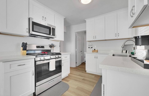 Este alojamiento de 2 dormitorios y 1 baño cuenta con una sala de estar, un comedor, aire acondicionado y servicio local de entrega de comida. El cuarto de baño incluye un secador de pelo y toallas. La cocina está equipada con horno, placa de cocina y frigorífico, además de cafetera y tetera, microondas y utensilios de cocina. Podrás viajar con poco equipaje, porque tendrás una lavadora y una secadora a tu disposición.