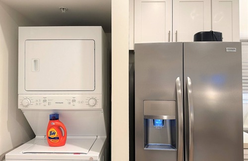 Este alojamiento de 1 dormitorio y 1 baño cuenta con una sala de estar, aire acondicionado y escritorio. El cuarto de baño incluye un secador de pelo, toallas y papel higiénico. Prepara una comida casera en la cocina, equipada con horno, placa de cocina y frigorífico, además de cafetera y tetera, hervidor eléctrico y máquina de hielo. Y como podrás aprovechar la lavadora y la secadora, no te hará falta llevar mucho equipaje.