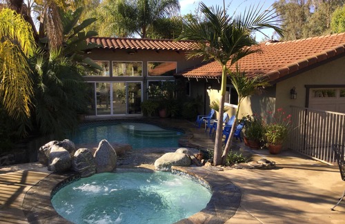 Hemos diseñado nuestra casa para que sea cómoda para cualquiera que busque relajarse en el hermoso norte del condado de San Diego. Esta propiedad es un paraíso tropical muy singular con su propio estanque privado de medio acre para canotaje o pesca, cancha de tenis, piscina y spa. Todo a minutos de las mejores playas, atracciones, gastronomía y cervezas artesanales que San Diego tiene para ofrecer.