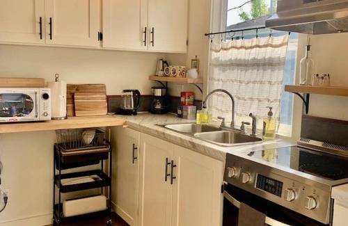 Prepara una comida casera en la cocina, equipada con horno, cafetera y tetera, microondas y utensilios de cocina. Disfruta del wifi y de la televisión. Otras comodidades de este alojamiento de 1 dormitorio y 1 baño incluyen ropa de cama, calefacción y una mesa de comedor.