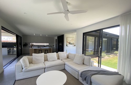 Welcome to 'The Lone Palm', a peaceful waterfront paradise offering relaxation, open plan living, outdoor entertaining, fishing and watersports. Light and bright, our stylish modern home is the ultimate space for a getaway. Relax by the saltwater pool, cast a line out back and enjoy a summer night by the fire pit whist overlooking the peaceful canal. Anchor your boat, beach your kayak on the golden sand or catch a mud crab. Here, you're 5 minutes away from world class beaches, shops and parks.