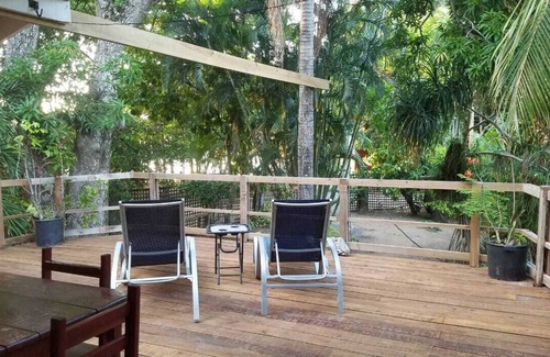 Está ubicado en un jardín del Edén de seis acres con más de 40 frutas y palmeras donde puedes disfrutar de manzanas, mangos, plátanos, cocos y anacardos ** (dependiendo de la temporada), 300 pies de playa privada compartida con algunos otros residentes. del Santuario, Propiedad cerrada con guardia de seguridad y administrador de propiedad residente. La propiedad se encuentra dentro de la Reserva Marina. El arrecife está a 100 pies del muelle; el delfín a unos 50 pies de la orilla.