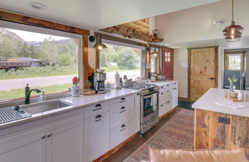 Prepara una comida casera en la cocina, equipada con placa de cocina, frigorífico y lavavajillas, además de cafetera y tetera, máquina de hielo y microondas. Disfruta de la conexión a Internet y de la televisión por satélite o cable. El cuarto de baño incluye un secador de pelo y toallas. Podrás viajar con poco equipaje, porque tendrás una lavadora y una secadora a tu disposición. Otras comodidades de este alojamiento de 2 dormitorios y 2 baños incluyen una chimenea, ropa de cama, una tabla de planchar y calefacción.