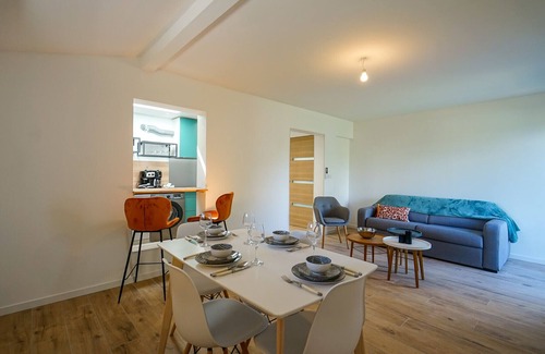 Relájate en el jardín o tómate algo en el balcón de este apartamento de 55 m². Para cambiar un poco, entra y disfruta del wifi y de la televisión.