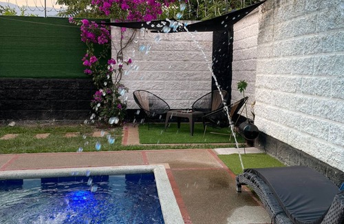 Cuenta con: Piscina y Parqueadero privado, Sillas Asoleadoras, Sala, Juegos de Mesa, Comedor, Alcoba con cama Queen , Cocina integral , Comedor , BBQ , Ventiladores , Wifi , Netflix