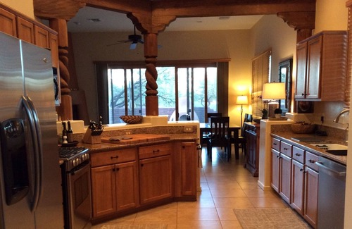 Situada a solo 2 cuadras de un parque del vecindario ya 4 cuadras del pueblo, esta hermosa casa de estilo suroeste está rodeada por dos lados por un área común y está cerca del sendero De Anza. A poca distancia de la piscina comunitaria y las instalaciones de entrenamiento. Esta cómoda y decorada casa cuenta con una gran suite principal, habitación de invitados, oficina y cocina gourmet con encimeras de granito y electrodomésticos Bosch. Vistas a la montaña desde el gran patio trasero privado con chimenea. Todo acerca de esta casa la convierte en la opción perfecta para vacaciones, entretenimiento y alquiler a corto o largo plazo.