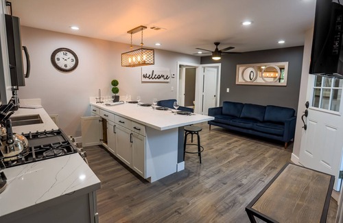 El sueño tendrá un nuevo significado aquí. Las camas cuentan con colchones posturepédicos, sábanas de algodón egipcio y almohadas de colección de hotel. Los televisores son televisores inteligentes de alta resolución con más de 500 paquetes completos de Cox que incluyen, por supuesto, todas las redes deportivas, HBO y muchos más canales de música y televisión. También tiene acceso al centro de aplicaciones para transmitir Netflix, Hulu o su aplicación favorita en la comodidad de su hogar de San Diego.