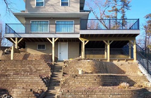 Cuatro dormitorios, uno y medio baños. Lago antiguo hogar recientemente actualizado. Todos los baños nuevos, revestimientos para el suelo y colchones. Tres camas queen y cuatro camas individuales. Todo en el segundo piso. Amplia sala de estar y terraza con vista al lago. Múltiple paso hacia el lago. Ochenta pies de frente al lago. Muy bien ajardinado. Cocina totalmente amueblada. Lavadora y secadora en el lugar. Parrilla de gas disponible para su uso. El espacio en el muelle está disponible con previo aviso. No hay acceso a los barcos propietarios. Estacionamiento para hasta tres vehículos proporcionados.
