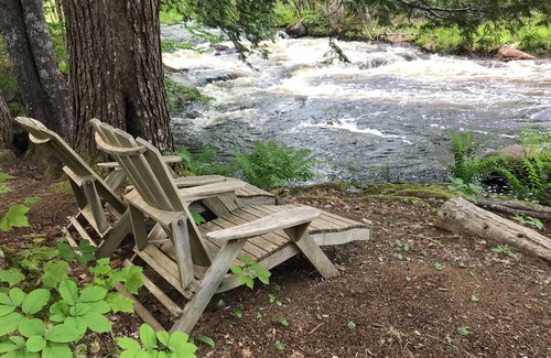 La cabaña Heron's Rest, ubicada durante todo el año, se encuentra en un terreno de un acre al lado de uno de los rápidos más grandes del río Petite. Este alquiler tranquilo y privado está justo al lado de la carretera principal, lo que brinda acceso rápido a la amplia gama de intereses y actividades locales. Es el lugar perfecto para una escapada romántica para dos o un retiro personal. La casa está totalmente equipada con nevera, estufa, lavavajillas y lavandería. Dormirán 2 en la cama matrimonial del dormitorio principal. Se accede a la gran terraza que da al río desde la cocina e incluye una barbacoa y un comedor al aire libre. Los huéspedes pueden disfrutar de una tarde tranquila en la terraza escuchando el río y mirando las estrellas o hacer una hoguera en la hoguera junto al río.