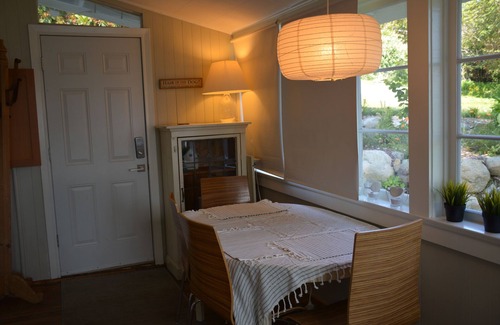 Relájese con un libro en la cama de día y contemple las increíbles vistas o camine 200 pasos desde el patio trasero, baje por el serpenteante sendero del bosque y tendrá toda la playa para broncearse, nadar o peinarse en la playa. Al final del día, tome un baño en la bañera, relájese frente a la acogedora chimenea y disfrute de una cena con vista al agua donde el sol de la tarde se filtra a través de árboles coníferos de 150 años y jardines maduros.