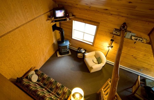Unidad superior de dúplex, todo interior de pino nudoso, chimenea de gas, totalmente amueblado, algunas sábanas proporcionadas. Paseo corto a senderos para motos de nieve, sendero de esquí de fondo cruzado en la propiedad, área de esquí alpino a aproximadamente 1 hora de distancia. Estacionamiento disponible para remolques. Para el piragüismo y el kayak de verano desde el barco privado que aterriza en las cabeceras del río Wisconsin. Un montón de arándanos silvestres para recoger.
