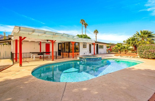 Updated mid-century gem with private pool, spa, gas grill, and free WiFi Se encuentra en Racquet Club South. Updated mid-century gem with private pool, spa, gas grill, and free WiFi ofrece alojamiento, con Lavandería, Piscina, TV, Entre otras comodidades. Estas características Casa Lavandería, Piscina, TV, Para que su estadía sea cómoda.