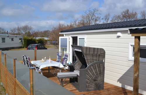 Otra ventaja del chalet "Carpe Diem" Ameland es una amplia terraza de madera donde puede asar (parrilla de gas con botella de gas disponible), relajarse, leer y quedarse hasta tarde en la noche a través del área totalmente protegida y disfrutar del sol.