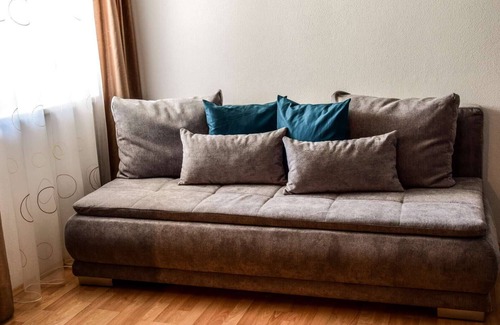 1 dormitorio grande con cama doble y sofá cama desplegable (ya sea en el dormitorio o en la cocina)