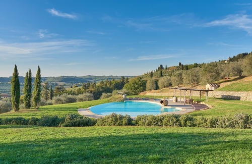 Esta hermosa villa se encuentra en una colina de Chianti y forma parte de una gran granja donde se producen excelentes y reconocidos vinos. Alrededor de olivares y viñedos en los que podrá disfrutar de una hermosa vista. La ubicación es aislada, en comparación con la parte principal de la granja, y le permite disfrutar de todas las bellezas que la rodean.