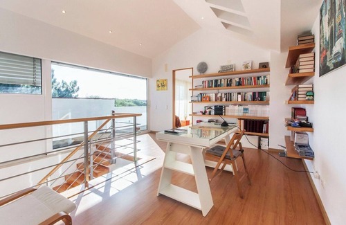 En el interior, no se han olvidado las necesidades de la generación actual, por lo que dispone de un espacio flexible para trabajar... o simplemente para leer y escribir postales ilustradas.