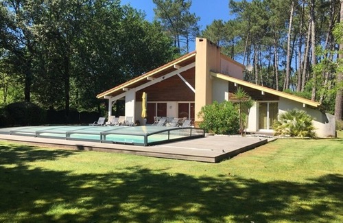 Idealmente ubicado en una tranquila zona rural bajo los pinos, agradable villa con capacidad para 10 personas con una terraza muy soleada, una gran piscina segura de 9.50 x 3.80 y un agradable jardín de 4458m². Carril bici desde la villa. ¡Todo está allí para unas excelentes vacaciones!