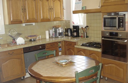 cocina equipada (horno, microondas, vitrocerámica, frigorífico, lavavajillas, cafetera, sala de estar / comedor 30 m2 con TV, reproductor de DVD, 3 dormitorios, 1 cuarto de baño y un aseo.