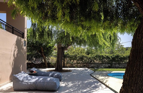 No, esta Filaki villa no tiene piscina. Vea los detalles sobre la disponibilidad de piscina interior o privada y otras instalaciones.