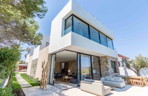 Villa de diseño, con espectaculares vistas al mar, sobre la playa en Mal Pas. La casa cuenta con un acceso a las dos playas de aguas cristalinas sobre las que se encuentra, la Playa de Sant Pere y la Playa de Sant Joan. Se trata de dos playas de arena, abiertas a la bahía de Pollensa y con vistas al cabo Formentor.