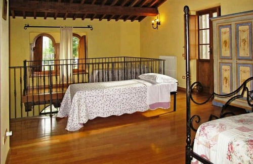 2 quadruple bedrooms each with double bed and 2 single beds, both furnished with original antiques, and embellished with two fabulous four-poster beds hand-forged by a well-known craftsman from Città di Castello