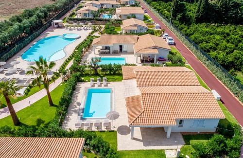 La villa se encuentra en una residencia turística de aproximadamente 20 casas entre 200 y 400 metros de la playa de Museddu en Cardedu.